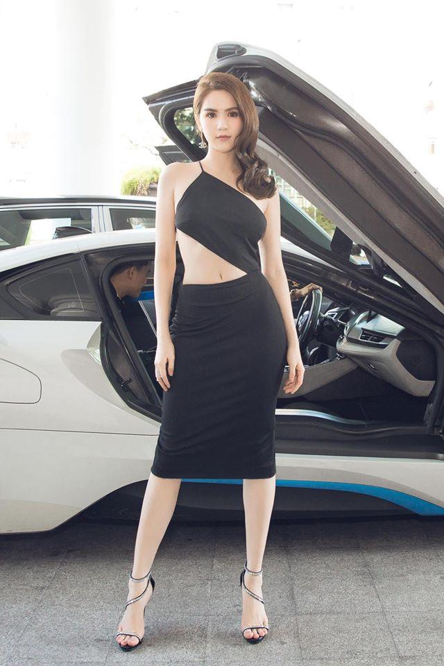 Vào chiều qua, ngày 26/3, khi đến tham dự một sự kiện tại quận 1, "nữ hoàng nội y" Ngọc Trinh gây chú ý khi bước xuống từ chiếc xe thể thao hàng hot BMW i8. Trang phục của người đẹp Trà Vinh cũng gây ấn tượng với mẫu váy cut-out, khoe vòng eo và để lộ lưng trần.