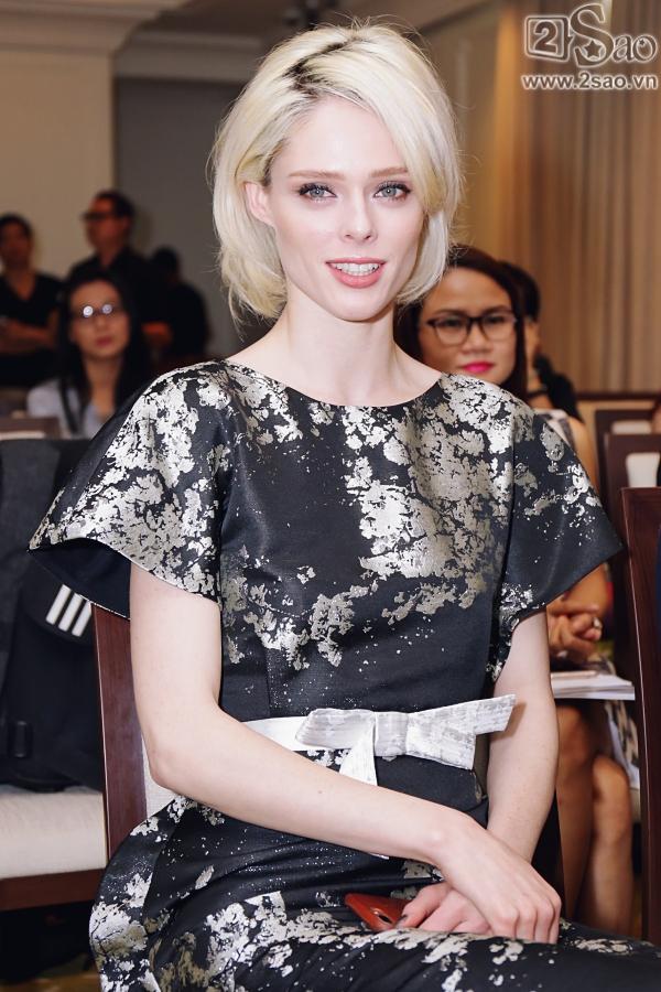Coco Rocha lựa chọn trang phục của NTK Phương My để xuất hiện trước giới truyền thông. Cô chia sẻ