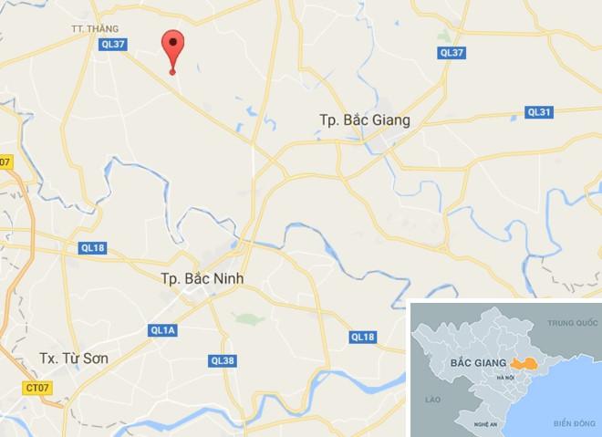 Hiện trường cách TP Bắc Giang hơn 20 km. Ảnh: Google Maps.