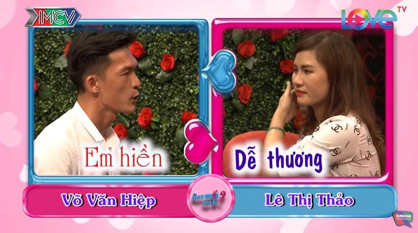 Hiệp nhận thấy sự hiền thục, dễ thương của Thảo. Cả hai đã có những hứa hẹn nếu như có thể hẹn hò với nhau. Hiệp còn thể hiện tài tâng bóng ngay trên sân khấu của chương trình "Bạn muốn hẹn hò" khiến Thảo hết sức ngưỡng mộ. Sự đồng điệu trong trái tim đã khiến Thảo và Hiệp thực sự mến mộ và bấm nút hẹn hò, bắt đầu câu chuyện tình yêu thương ngọt ngào. Cả hai MC đều hi vọng đây sẽ là một mối tình đẹp. Cô nàng kế toán có vẻ còn nhút nhát rất nhiều khi được Hiệp trao nụ hôn lên trán.