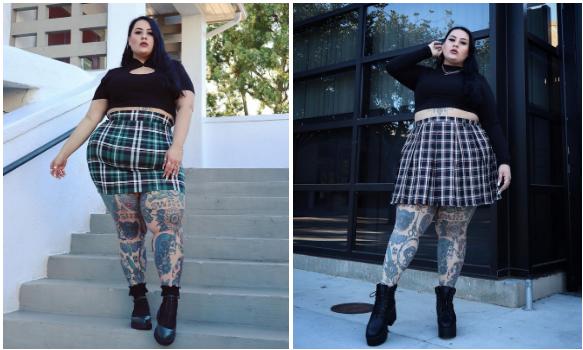 Các hình xăm trở thành điểm nhấn độc đáo cho diện mạo của nữ người mẫu. Cô thể hiện sự am hiểu về thời trang khi phối đồ có sự cân bằng giữa màu sắc và họa tiết. Ảnh: @glamghoul.
