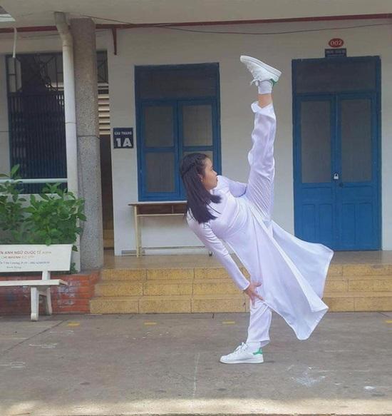 Trong tà áo dài trắng truyền thống, lại là một học sinh Trung học nhưng cô bạn này vẫn