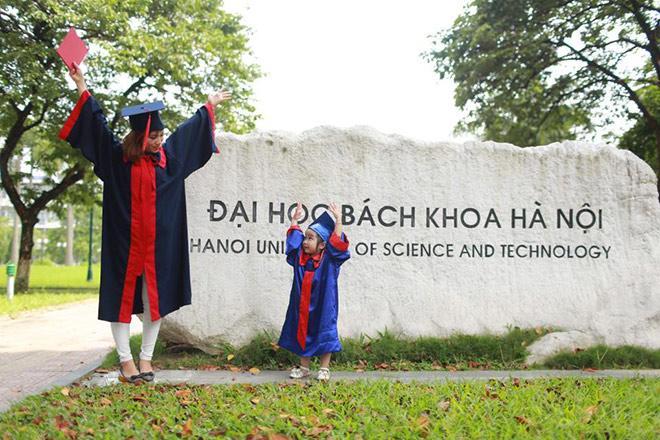 Xuất hiện trên hàng loạt fanpage Việt lớn gần đây, loạt ảnh một nữ sinh viên Bách Khoa trong bộ đồ cử nhân đang âu yếm cô con gái nhỏ thu hút sự quan tâm mạnh mẽ.