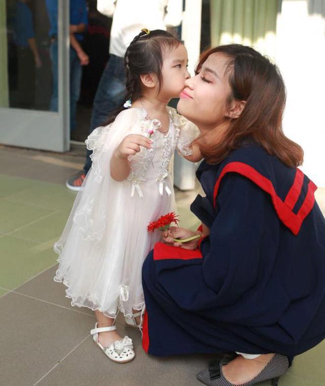 “Mẹ vui vì hôm nay Thỏ được cùng mẹ đi nhận bằng. Còn vui hơn nữa khi được đưa con đi đến những nơi gắn liền với quãng đời sinh viên Bách khoa của mẹ. Mẹ mong con mai sau lớn, cũng trở thành một nữ sinh Bách khoa như mẹ đã từng, con yêu nhé!".