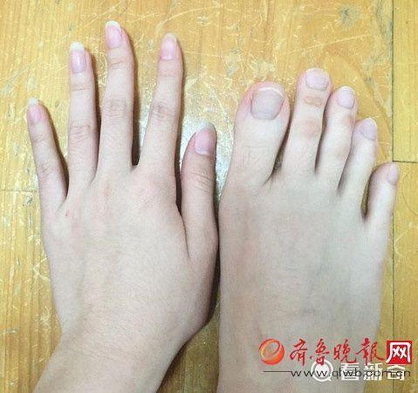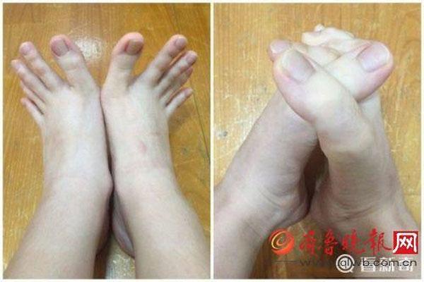 Nữ sinh này chỉ cao 1m51 nhưng lại sở hữu bàn chân với những ngón chân thon, dài tới... 5 cm!Lúc nhỏ, cô không để ý lắm đến điểm khác thường này. Lần đầu nhìn thấy ngón chân của những người khác, cô chỉ nghĩ là chúng hơi ngắn.