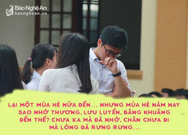 Lễ bế giảng năm học luôn là thời khắc chia xa nhiều lưu luyến, bồi hồi, đặc biệt là với học sinh lớp 12. Vừa qua, hàng ngàn học sinh trường THPT Chuyên Phan Bội Châu (Nghệ An) đã có những phút giây vỡ òa trong cảm xúc trước bài văn chia tay tuổi học trò của bạn Trần Thị Thanh Tú (lớp 12C1, chuyên Văn).