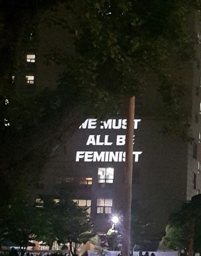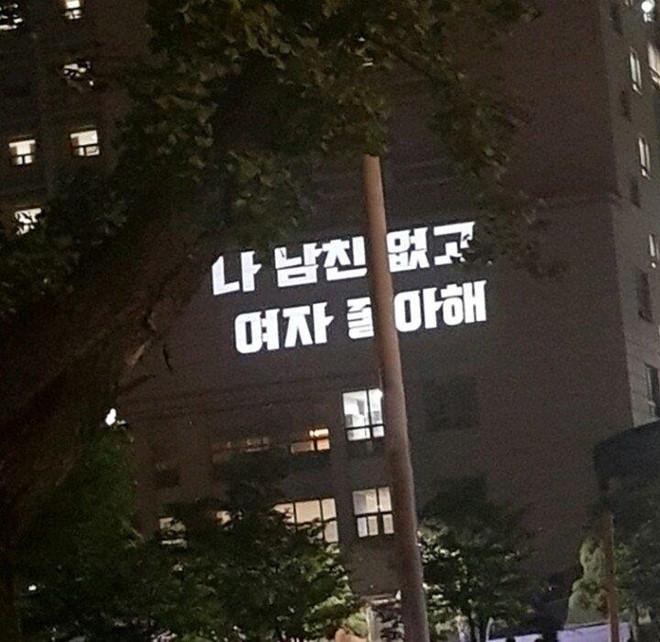 "Tôi không có bạn trai, tôi thích phụ nữ", "Chúng tôi không phải là hoa", "Cơ thể của tôi, lựa chọn của tôi", "Nữ quyền được nâng cao không có nghĩa nam quyền sẽ giảm xuống",...Những dòng chữ thắp sáng ở khu vực ký túc xá nữ của trường đại học Ngoại ngữ Hàn Quốc nhanh chóng được chia sẻ rộng rãi trên mạng xã hội nước này, theo Instiz.