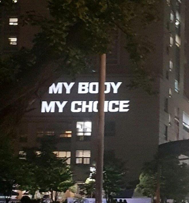 Tuyên ngôn: "Cơ thể của tôi, lựa chọn của tôi" được thắp sáng. Ảnh: Instiz.