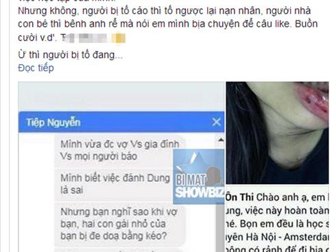 Cũng trong lần chia sẻ này, D. chia sẻ đoạn video up lên từ Facebook đã bị hack với nội dung cắt ghép hình ảnh, đoạn inbox của cô với bạn bè. Điển hình là hình ảnh gia đình đi ăn 20/10 từ 4 năm trước kèm dòng chú thích: "Liệu một người bị bạo hành từ 4 năm trước có thể đi ăn cùng gia đình vui vẻ như thế này không?".