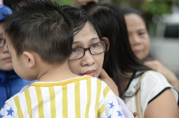 Người mẹ òa khóc, ôm trầm lấy hai con nhỏ.