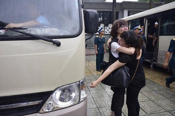 Thân nhân lên xe, tiễn các chiến sĩ đến Đài hóa thân Hoàn vũ, Văn Điển. (Ảnh: Zing)