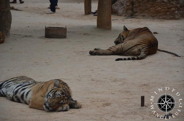 Các cá thể hổ bị trói trên sàn và chúng không còn sức để có thể hoạt động hay làm gì khác. Do vậy, du khách có thể động chạm vào người chúng dễ dàng. Nhiều cá thể còn bị nhổ phần răng và móng để không gây hại cho khách du lịch.