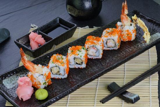 Món cuốn Tôm Tenpura và trứng cá chuồn mang hương vị ngọt ngào, tươi mới