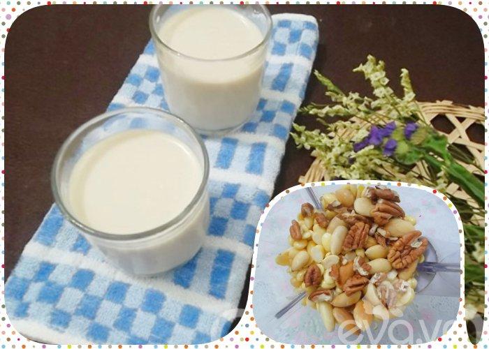 Đỗ tương ngâm khoảng 5 tiếng cho nở rồi đãi bỏ vỏ. Óc chó đập bỏ vỏ lấy phần nhân. Hạnh nhân ngâm khoảng 2 tiếng bóc bỏ vỏ.