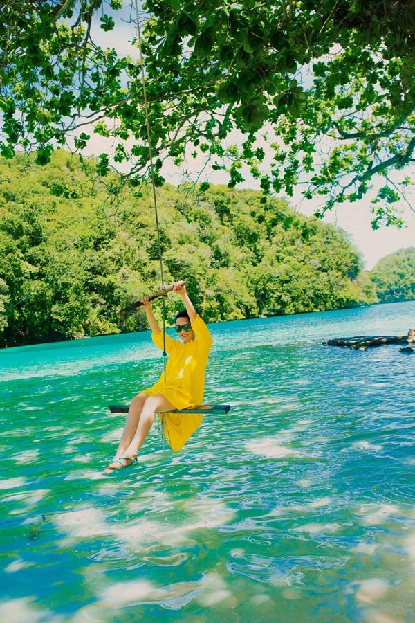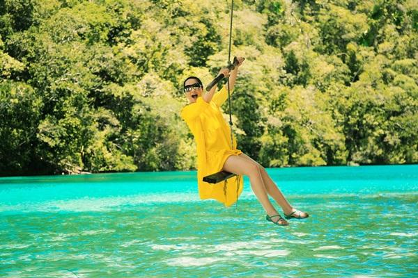 Hoa hậu đã có những giây phút cao hứng trở về với tuổi thơ qua trò chơi đu