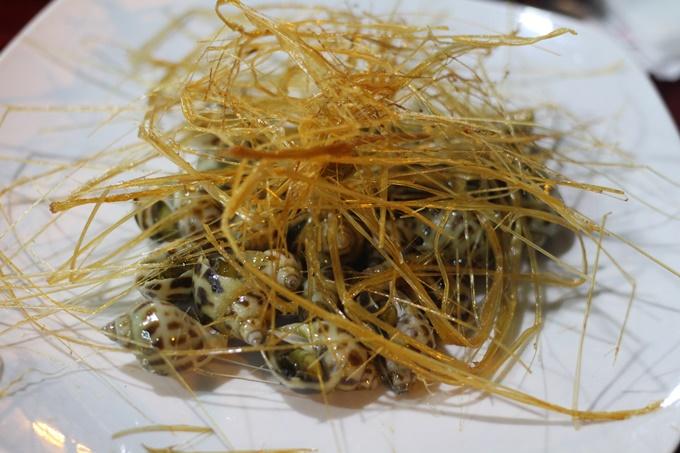 Con ốc được bao bọc một lớp đường óng ánh với vị mặn ngọt vừa phải, cho vào miệng khiến thực khách cảm giác như đang ăn kẹo mút, khá thú vị. Đối với càng ghẹ thì phần thịt bên trong không thấm vị, bạn có thể ăn kèm với những sợi muối pha đường mảnh có màu vàng như rơm, tan ngay khi cho vào miệng.