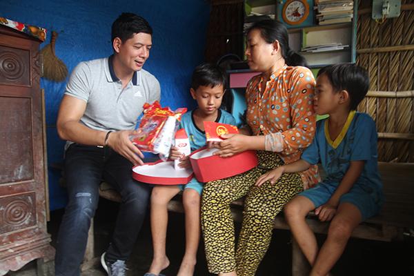 Trong chuyến đi về vùng đất mũi Cà Mau, nam diễn viên điển trai không ngần ngại vét sạch tiền túi để mua tặng gạo, dép và quạt máy để tặng một gia đình khó khăn.