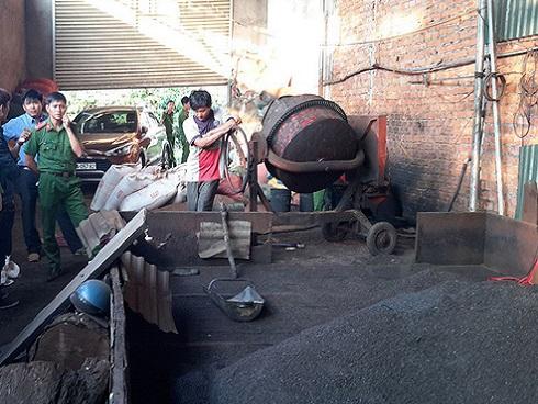 Tại đây, lực lượng chức năng phát hiện chủ cơ sở này đang cho nhân công dùng dung dịch hỗn hợp nước và pin để ngâm, tẩm, nhuộm đen phế phẩm cà phê. Phòng Cảnh sát Môi trường đã phối hợp với ngành chức năng lập biên bản, niêm phong 21,265 tấn phế phẩm cà phê đã ngâm, tẩm nhuộm đen và được đóng bao bì, 40 lít dung dịch, 35kg pin bị đập dẹp, 192kg lõi, nắp và vỏ pin.