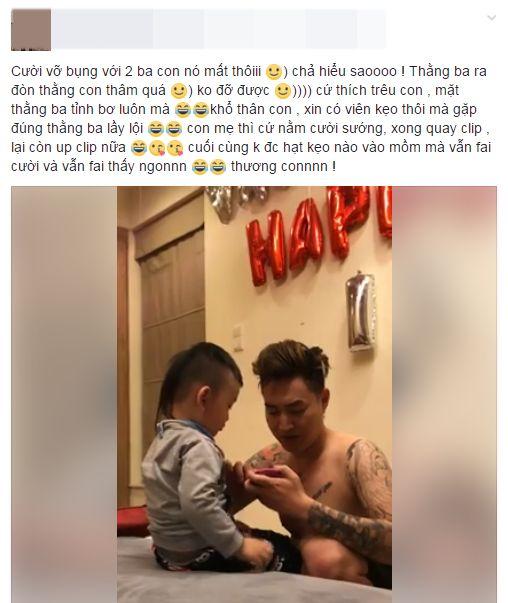 Theo đó, cách đây ít ngày, chị V.A có chia sẻ đoạn video quay cảnh chồng có tên S.H cho con trai ăn kẹo kèm đoạn bình luận trên. Không ngờ rằng đoạn video nhận được nhiều sự quan tâm từ phía cư dân mạng, đặc biệt đã có hơn 9 nghìn lượt thích và 2 nghìn lượt chia sẻ.
