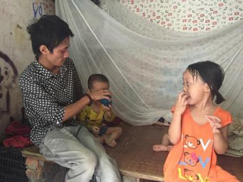 Hoàn cảnh gia đình nhà anh khó khăn nên anh và vợ vào Đồng Nai làm thuê hơn 1 năm nay. Anh làm cơ khí, phụ hồ, vợ anh làm công nhân. Đợt dịch này, công ty cho nghỉ đã gần 2 tháng, cực chẳng đã anh mới phải ôm con về quê.