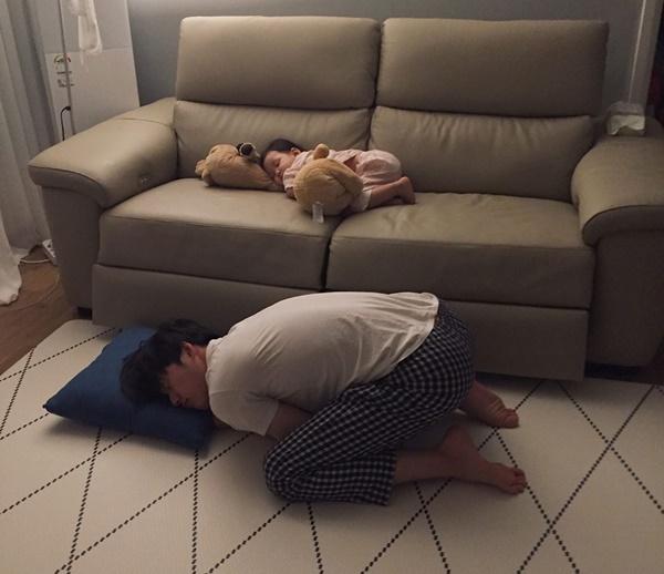 Ông bố trẻ với tạo hình hài hước khi con gái đang ngủ.