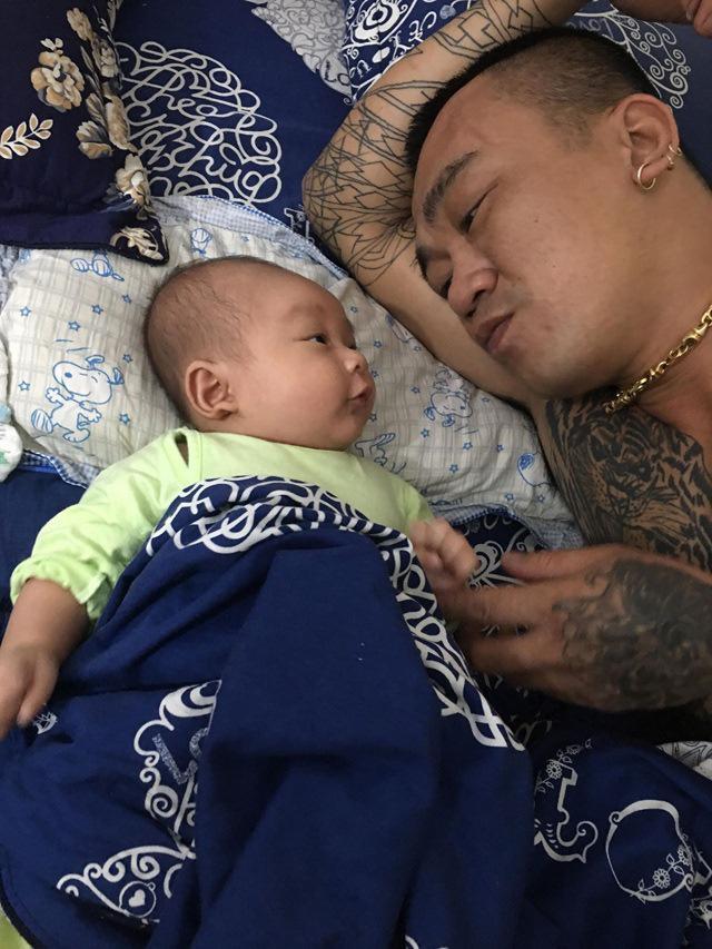 Clip ông bố xăm trổ ru con ngủ khiến người xem thích thú.