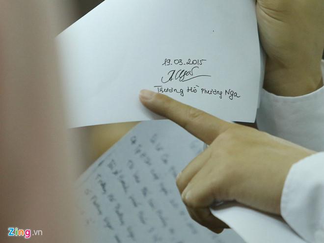 Luật sư cho rằng những tài liệu này được thu tại nhà Phương Nga, có bao gồm chữ ký của bị cáo. Tuy nhiên, Phương Nga nói: “Ngày hôm đó đưa gì tôi cũng ký, sau đó tôi mới tỉnh ra”.