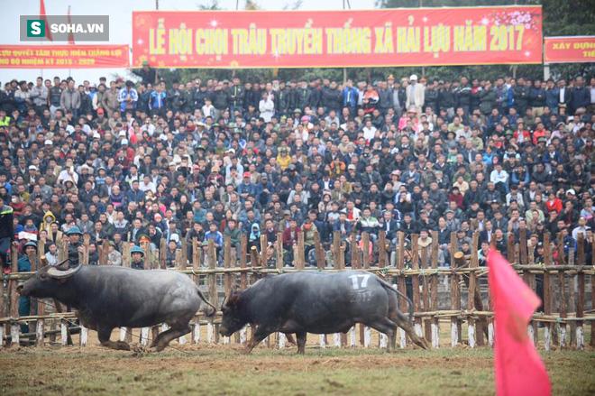 Sau đó Ban tổ chức và chủ trâu phải che mắt, quăng dây để đưa trâu 17 ra, rồi điều máy xúc để kéo trâu 20 đang hoảng loạn ra khỏi sân.