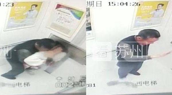 Sự việc xảy ra khoảng 15h ngày 13/5 trong thang máy một khu dân cư ở thành phố Tô Châu, Trung Quốc. Video do camera an ninh lắp bên trong thang quay được cho thấy một ông già bước vào trong thang cùng một bé gái.