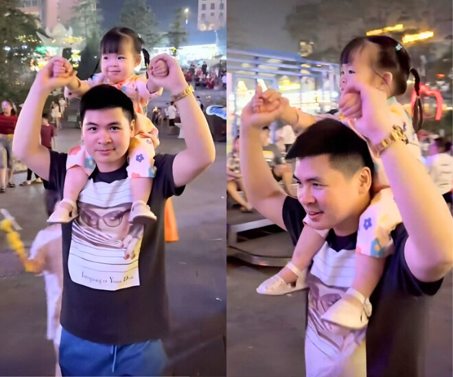 Con gái Tuệ An được ba cưng chiều hết mực khi cho ngồi trên vai như "tiểu công chúa". Nhiều người nhận xét, ái nữ thừa hưởng nhiều nét đẹp từ ba mẹ, đặc biệt là ông bố chủ tịch.