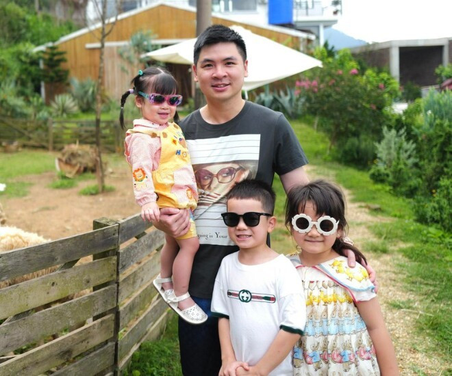 Mới đây, ông xã Đỗ Mỹ Linh gây chú ý khi chia sẻ bức ảnh bên 3 "thiên thần nhỏ". Trong hình, chủ tịch Đỗ Vinh Quang quây quần bên con gái Tuệ An và 2 cháu ruột là Gấu - Thỏ (con của Đỗ Quang Vinh - con cả Bầu Hiển).
