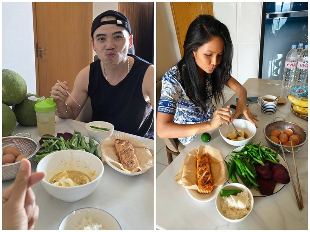 Theo đó, trong khi khẩu phần ăn của H'Hen Niê được bày biện trang trí đẹp mắt với đầy đủ chất dinh dưỡng thì phần ăn của ông xã Tuấn Khôi khiến nhiều người không nhịn được cười. Phần cơm nhão được trộn với cà rốt, ức gà... bị ví như "cám heo" vì quá thập cẩm.