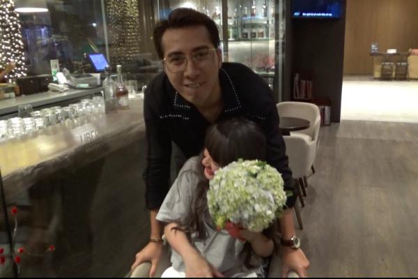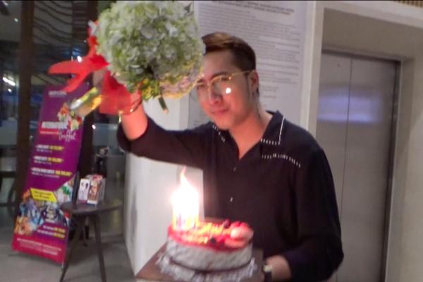 Gần 11 giờ đêm, OnlyC xuất hiện tại một nhà hàng ở trung tâm Sài Gòn với hoa, bánh kem