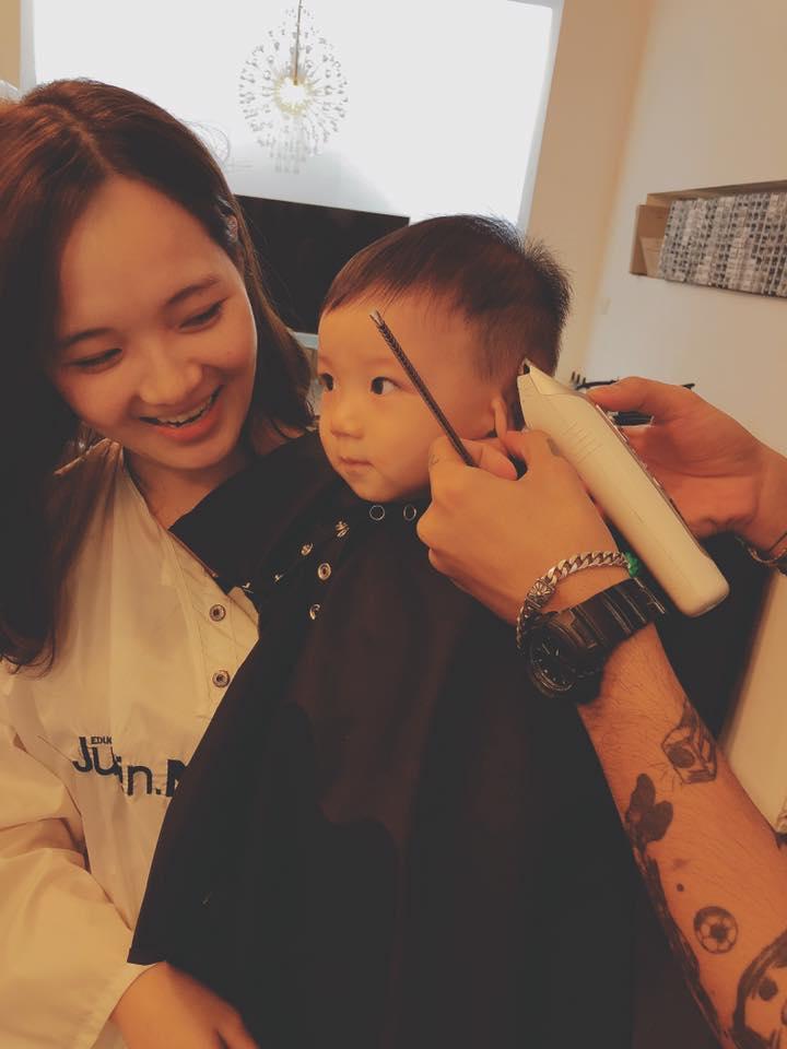 "Hot girl dân tộc" Thu Hương hào hứng chia sẻ khoảnh khắc con trai ngoan ngoãn ngồi im cắt tóc.