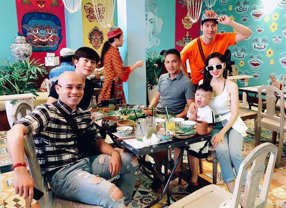 Tâm Tít và con trai lớn cùng ông xã đi "nhậu" cùng bạn bè.