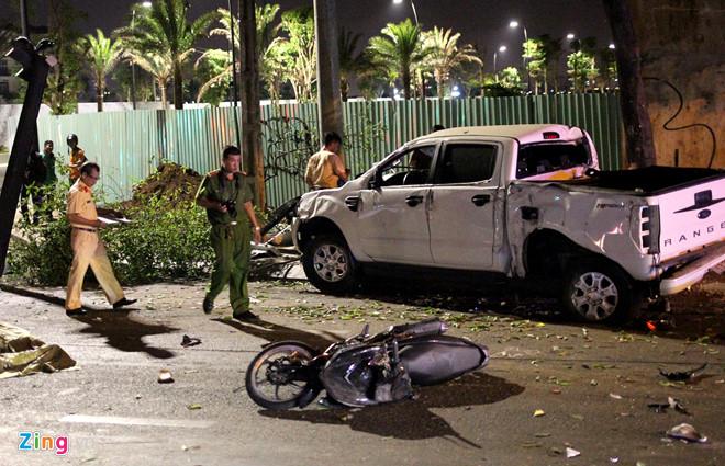 Khuya 20/4, nam tài xế lái ôtô bán tải hiệu Ford Ranger mang biển số TP HCM chạy trên đường Nguyễn Hữu Cảnh hướng từ quận Bình Thạnh đi trung tâm TP HCM.