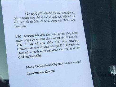 Sau khi quấn băng dính kín xe, chủ nhà không quên gửi lời nhắn "dằn mặt".