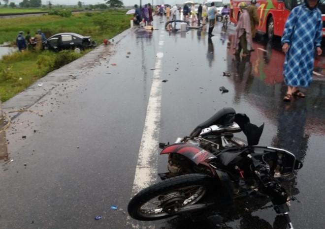Tại hiện trường, ôtô sau khi gây tai nạn đã lao xuống ruộng cùng một xe máy; các phương tiện trong vụ tai nạn bị hư hỏng nặng. Tài xế ôtô rời khỏi hiện trường.