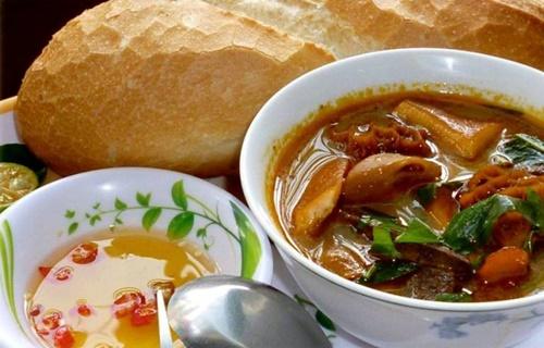 Phá lấu được ăn kèm với bánh mì và bá nước chấm cho thêm phần đậm đà. Ảnh: I.T