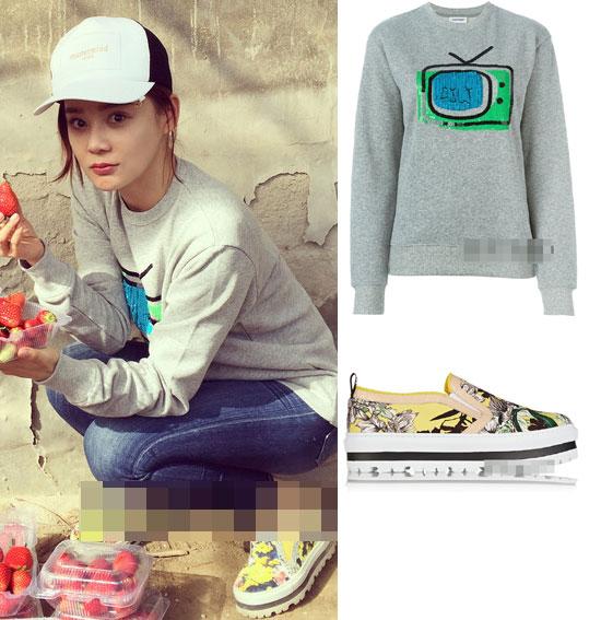 Viên San San trẻ như nữ sinh khi "đỏm dáng" cùng áo nỉ hiệu Au Jour Le Jour,