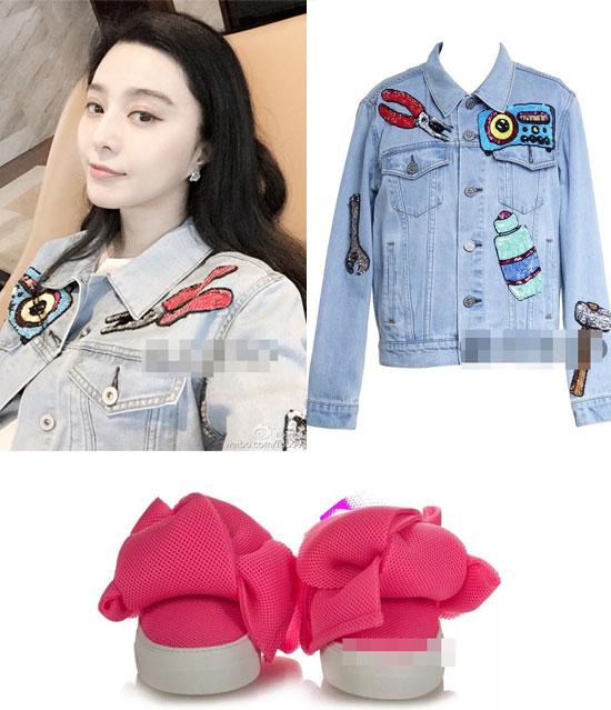 jacket cô mặc nằm trong bộ sưu tập 2016 hiệu Christopher Bu, đôi giày có nơ