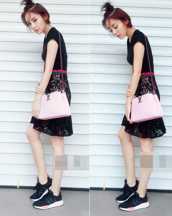 Mỹ nữ Tân Cương Na Trát thể hiện sự dịu dàng với váy ren và giày thể thao Adidas NMD