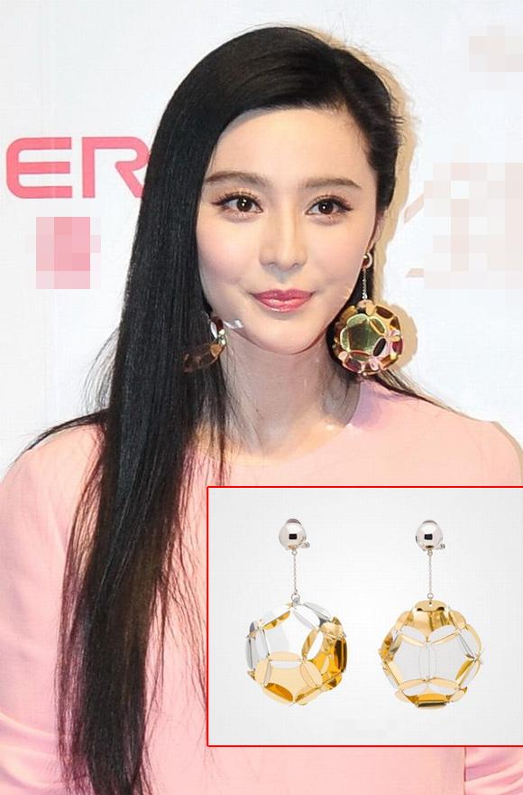 Lưu Diệc Phi lựa chọn đôi bông tai kim cương thiết kế tinh tế, tỉ mẩn