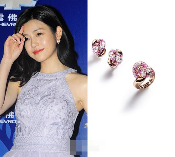 Triệu Vy trẻ trung và xinh tươi hơn khi diện những đôi bông tai hình nữ tính,