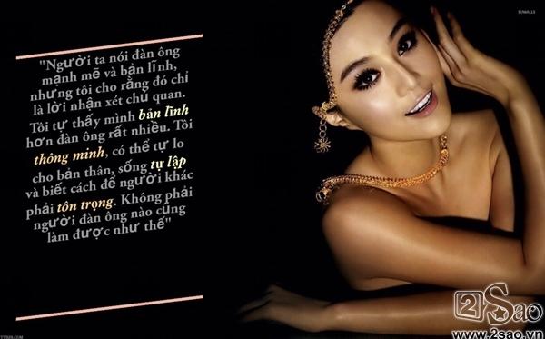 5. "Người ta nói đàn ông mạnh mẽ và bản lĩnh, nhưng tôi cho rằng đó chỉ là lời nhận xét chủ quan. Tôi tự thấy mình bản lĩnh hơn đàn ông rất nhiều. Tôi thông minh, có thể tự lo cho bản thân, biết cách sống tự lập và biết cách để người khác phải tôn trọng. Không phải người đàn ông nào cũng làm được như thế".