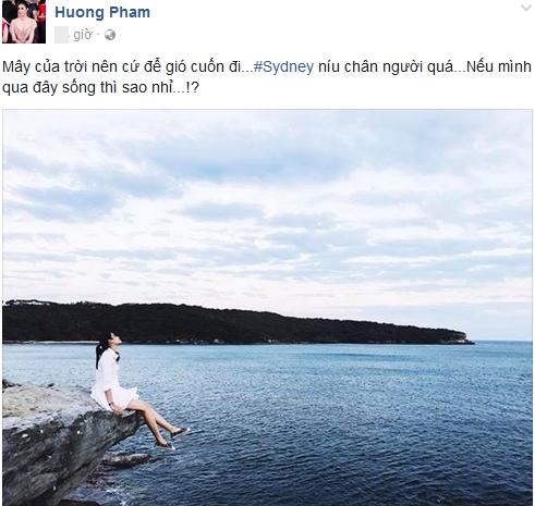 Trước thắc mắc của người hâm mộ, Phạm Hương chỉ đáp lại bằng hình ảnh tươi đẹp của mình tại Úc, hoặc bình luận lấp lửng: "Tuần mới vui vẻ nhé cả nhà". Hơn thế, nghi vấn cô mua nhà ở xứ sở Kangaroo càng có cơ sở khi người đẹp hào hứng đặt dấu bỏ lửng: "Mây của trời nên cứ để gió cuốn đi... Sydney níu chân người quá... Nếu mình qua đây sống thì sao nhỉ...?".