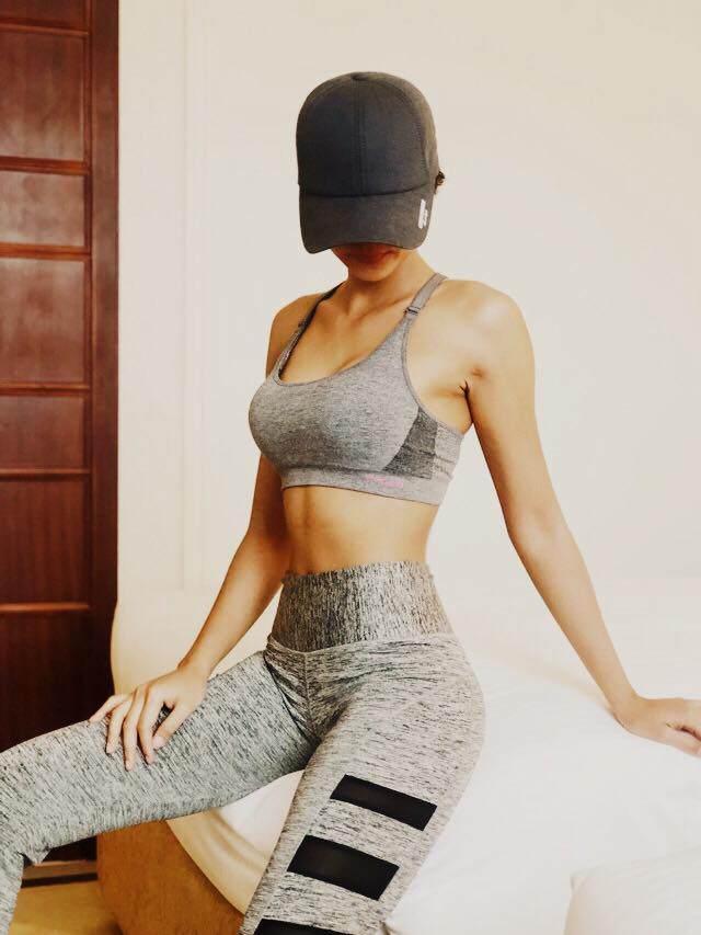 Minh Tú khoe body sắn chắc và nóng bỏng với set đồ thể thao ngắn, chiếc quần rộng giúp cô dễ dàng thực hiện những động tác khó.