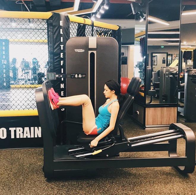 Á hậu Mâu Thuỷ rất thích sử dụng áo croptop ôm sát để tôn vình vòng eo đẹp mắt của cô, đồng thời mỹ nhân này luôn diện màu đen mỗi khi đến phòng tập.
