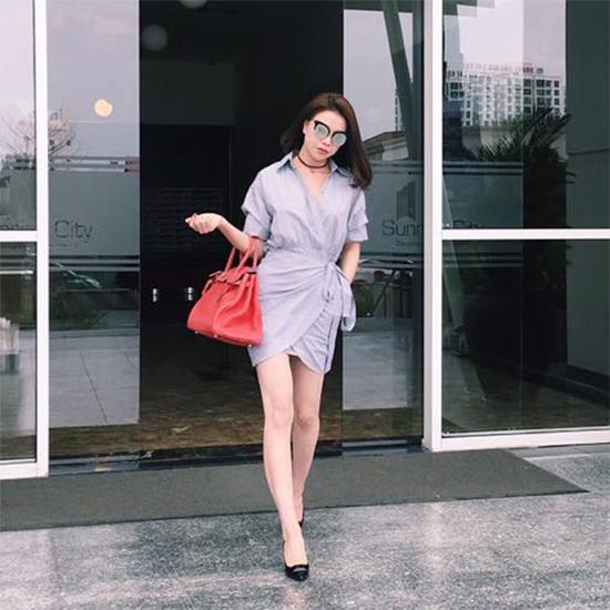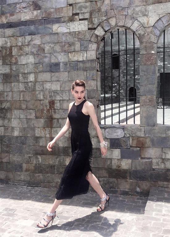 Cũng trong tuần qua, Hà Hồ lựa chọn chiếc váy đen ấn tượng ra phố. Cô kết hợp