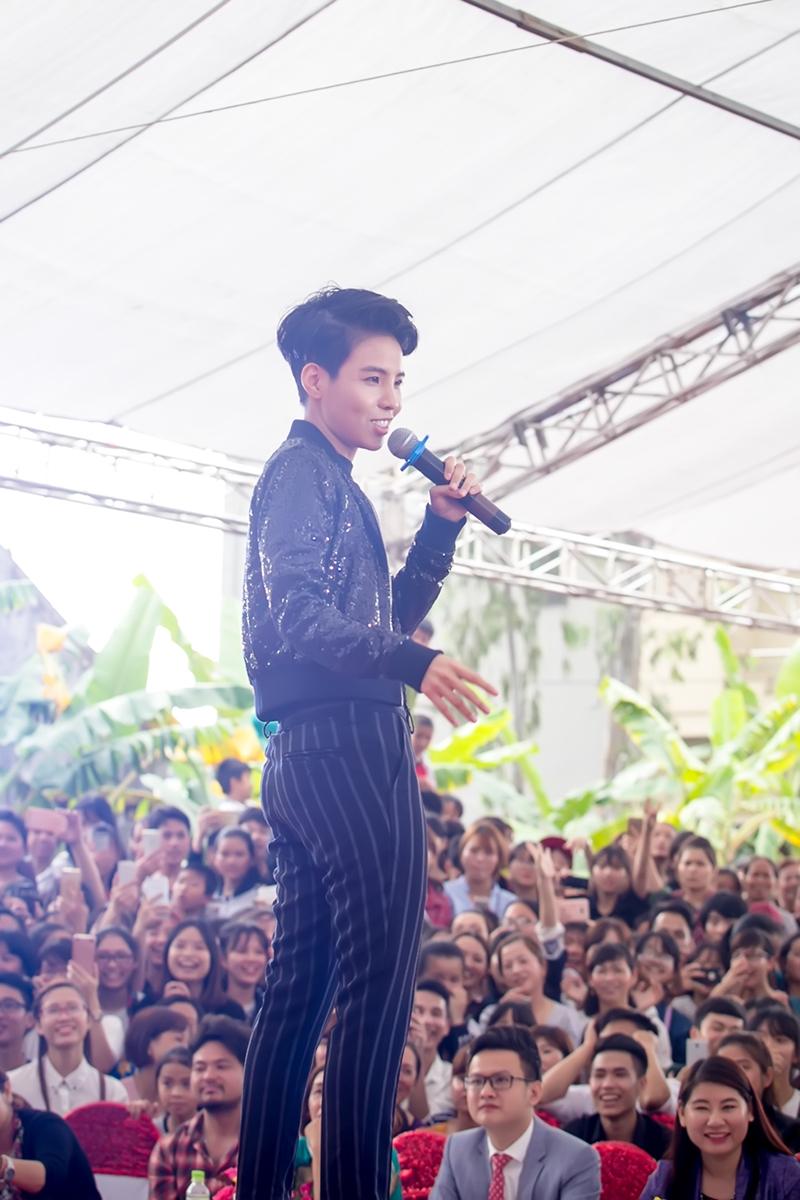 Cô không ngừng vẫy tay và hát theo Noo Phước Thịnh.